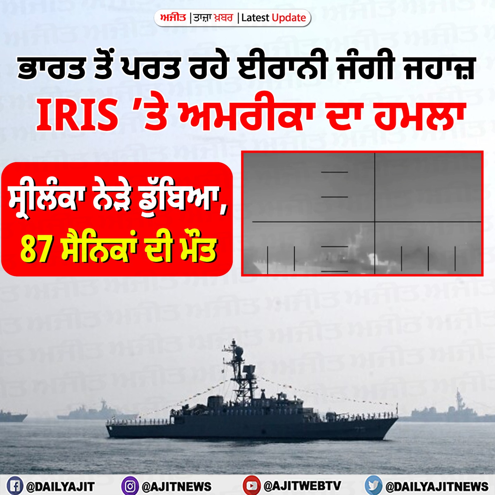 ਦੁਬਈ, 5 ਮਾਰਚ (ਪੀ.ਟੀ.ਆਈ.) - ਭਾਰਤ ਨੇ ਵੀਰਵਾਰ ਨੂੰ ਇਕ ਸਲਾਹ ਜਾਰੀ ਕੀਤੀ, ਜਿਸ ’ਚ ਸੰਯੁਕਤ ਅਰਬ ਅਮੀਰਾਤ ’ਚ ਆਪਣੇ ਨਾਗਰਿਕਾਂ ਨੂੰ ਖੇਤਰ ਦੀ ਮੌਜੂਦਾ ਸਥਿਤੀ ਦੇ ਮੱਦੇਨਜ਼ਰ ਸਥਾਨਕ ਅਧਿਕਾਰੀਆਂ...