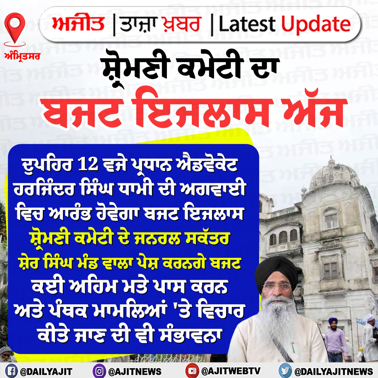 ਲੌਂਗੋਵਾਲ (ਸੰਗਰੂਰ), 28 ਮਾਰਚ ( ਸ,ਸ,ਖੰਨਾ,ਵਿਨੋਦ) - ਇਥੋਂ ਨੇੜਲੇ ਪਿੰਡ ਢੱਡਰੀਆਂ ਦੇ ਕਿਰਤੀ ਕਿਸਾਨ ਯੂਨੀਅਨ ਜ਼ਿਲ੍ਹਾ ਸੰਗਰੂਰ ਦੇ ਸੀਨੀਅਰ ਮੀਤ ਪ੍ਰਧਾਨ ਭਜਨ ਸਿੰਘ ਢੱਡਰੀਆਂ ਨਹੀਂ ਰਹੇ। ਸਵੇਰੇ ਜਾਣਕਾਰੀ ਦਿੰਦਿਆਂ ਕਿਰਤੀ...
