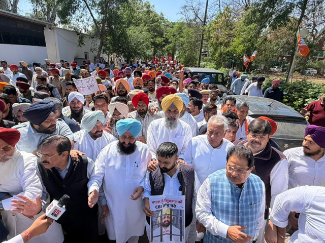 9ਲਾਲਜੀਤ ਭੁੱਲਰ ਦੀ ਗ੍ਰਿਫਤਾਰੀ ਨੂੰ ਲੈ ਕੇ ਭਾਜਪਾ, ਕਾਂਗਰਸ ਤੇ ਅਕਾਲੀ ਦਲ ਵਲੋਂ ਮੁੱਖ ਮੰਤਰੀ ਦੀ ਰਿਹਾਇਸ਼ ਅੱਗੇ ਜ਼ੋਰਦਾਰ ਪ੍ਰਦਰਸ਼ਨ