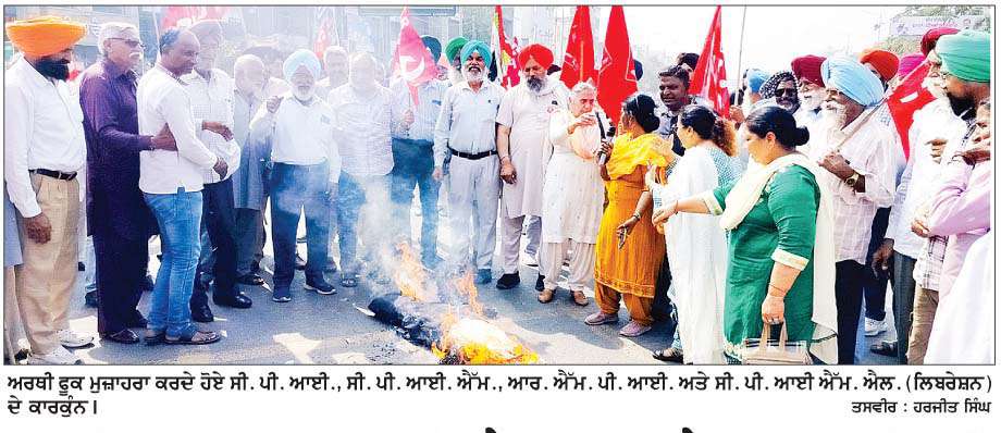; • ਸੀ. ਪੀ. ਆਈ., ਸੀ. ਪੀ. ਆਈ. ਐੱਮ., ਆਰ. ਐੱਮ. ਪੀ. ਆਈ. ਅਤੇ ਸੀ. ਪੀ. ਆਈ ਐੱਮ. ਐੱਲ. (ਲਿਬਰੇਸ਼ਨ) ਵਲੋਂ ਅਰਥੀ ਫੂਕ ਮੁਜ਼ਾਹਰਾ