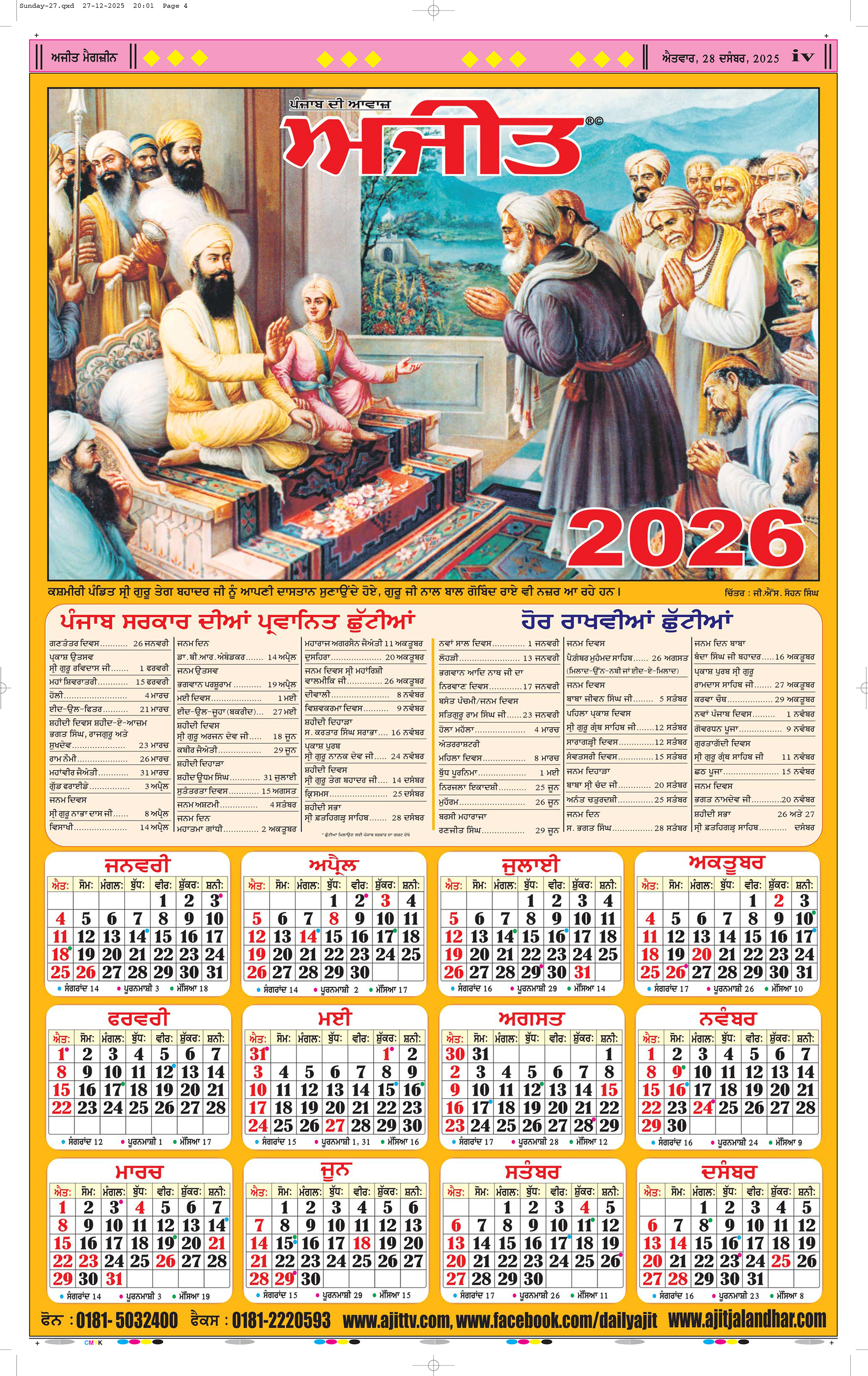 ਜਲੰਧਰ : ਸੋਮਵਾਰ 25 ਮੱਘਰ ਸੰਮਤ 555