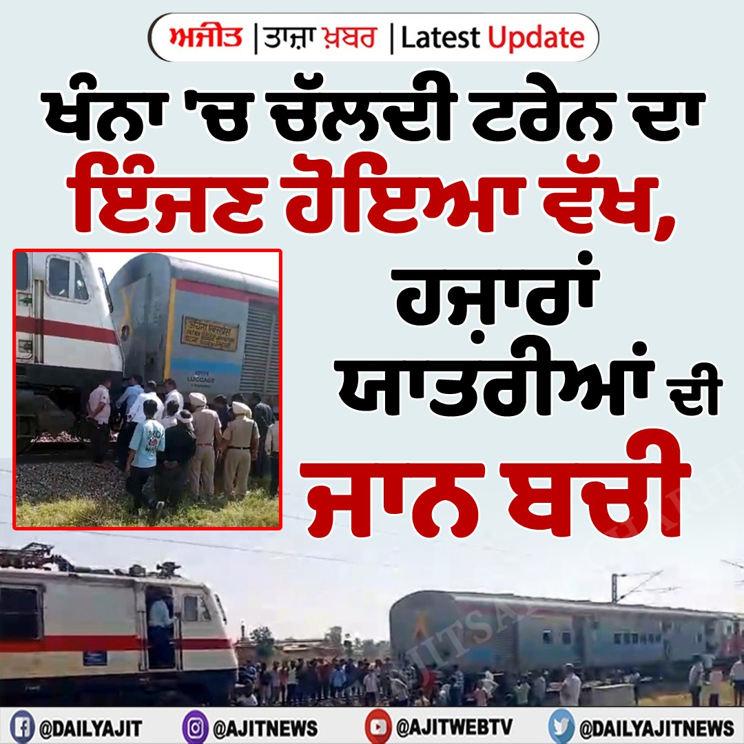 ਖੰਨਾ 'ਚ ਚੱਲਦੀ ਟਰੇਨ ਦਾ ਇੰਜਣ ਹੋਇਆ ਵੱਖ, ਹਜ਼ਾਰਾਂ ਯਾਤਰੀਆਂ ਦੀ ਜਾਨ ਬਚੀ