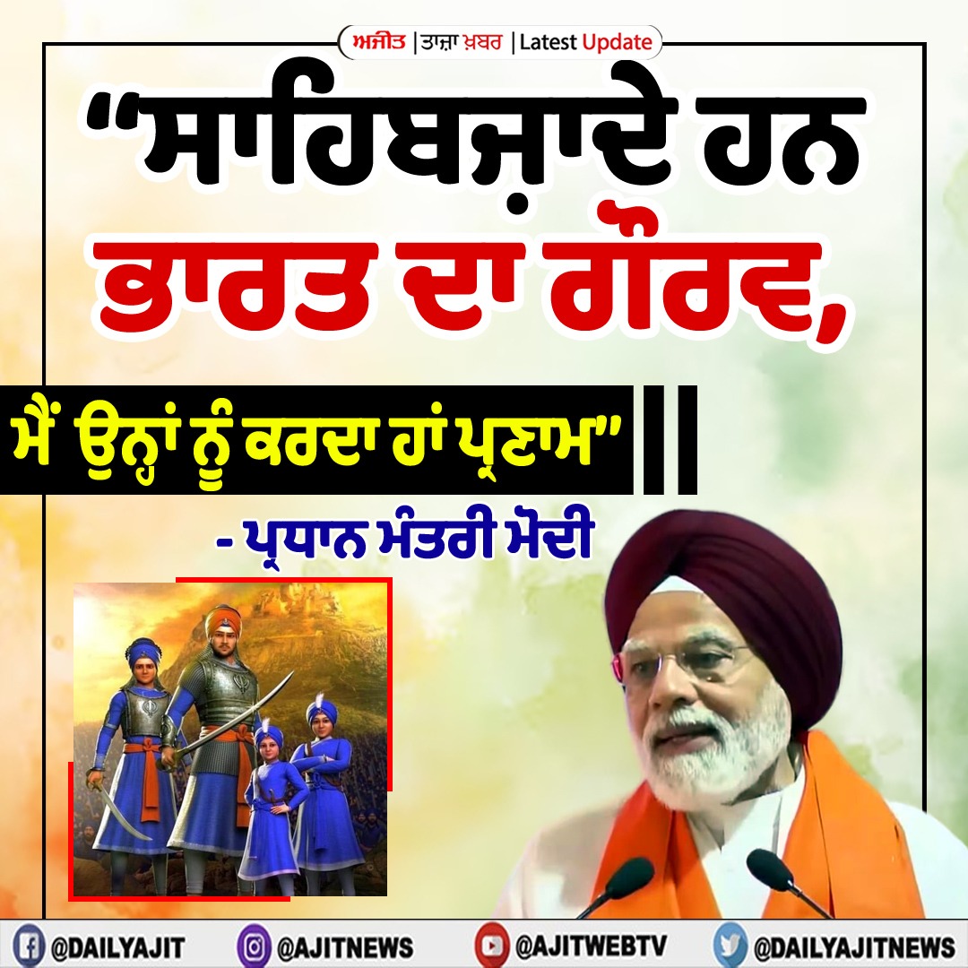 13ਗੁਰੂ ਗੋਬਿੰਦ ਸਿੰਘ ਜੀ ਤੇ ਸਾਹਿਬਜ਼ਾਦਿਆਂ ਦਾ ਜੀਵਨ ਲੋਕਾਂ ਨੂੰ ਕਰਦਾ ਰਹੇਗਾ ਪ੍ਰੇਰਿਤ- ਪ੍ਰਧਾਨ ਮੰਤਰੀ