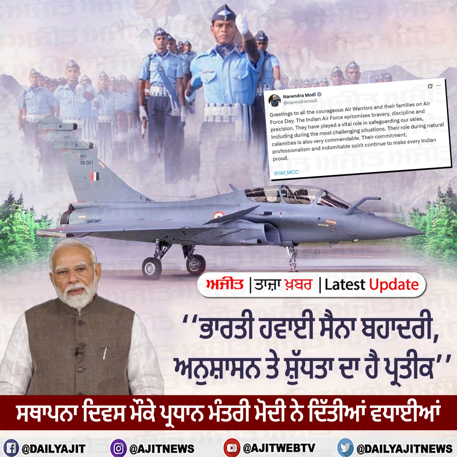 ਹਵਾਈ ਸੈਨਾ ਦਾ ਅੱਜ ਸਥਾਪਨਾ ਦਿਵਸ : ਰਾਸ਼ਟਰਪਤੀ ਤੇ ਪ੍ਰਧਾਨ ਮੰਤਰੀ ਨੇ ਦਿੱਤੀਆਂ ਵਧਾਈਆਂ