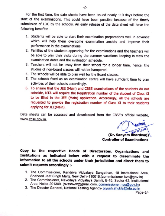 ਸੀ.ਬੀ.ਐਸ.ਈ. ਵਲੋਂ 10ਵੀਂ ਤੇ 12ਵੀਂ ਦੀਆਂ ਪ੍ਰੀਖਿਆਵਾਂ ਦੀ ਡੇਟਸ਼ੀਟ ਜਾਰੀ