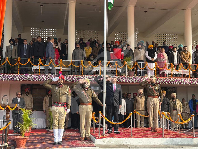 ਗੜ੍ਹਸ਼ੰਕਰ, 26 ਜਨਵਰੀ (ਧਾਲੀਵਾਲ)- ਗਣਤੰਤਰਤਾ ਦਿਵਸ ਮੌਕੇ ਨਗਰ ਕੌਸਲ ਦਫਤਰ ਗੜ੍ਹਸ਼ੰਕਰ ਵਿਖੇ ਕਰਵਾਏ ਗਏ ਸਮਾਗਮ ਦੌਰਾਨ ਮੁੱਖ ਮਹਿਮਾਨ ਪ੍ਰਧਾਨ ਤਿਰੱਬਕ ਦੱਤ ਐਰੀ ਵਲੋਂ ਤਿਰੰਗਾ ਝੰਡਾ ਲਹਿਰਾਇਆ ਗਿਆ।