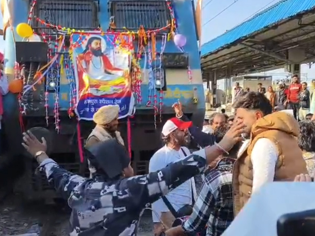 ਜਲੰਧਰ, 29 ਜਨਵਰੀ- ਸ੍ਰੀ ਗੁਰੂ ਰਵਿਦਾਸ ਜੀ ਦਾ 649ਵਾਂ ਜਨਮ ਦਿਨ ਮਨਾਉਣ ਲਈ ਅੱਜ ਸੰਗਤਾਂ ਜਲੰਧਰ ਰੇਲਵੇ ਸਟੇਸ਼ਨ ਤੋਂ ਰਵਾਨਾ ਹੋਈਆਂ ਇਸ ਮੌਕੇ ਡੇਰਾ ਸੱਚਖੰਡ ਬੱਲਾਂ ਦੇ ਮੌਜੂਦਾ ਗੱਦੀਨਸ਼ੀਨ ਸੰਤ ਨਿਰੰਜਣ ਦਾਸ ਜੀ ਦੀ ਮੌਜੂਦਗੀ ਵਿਚ ਬੇਗਮਪੁਰਾ ਐਕਸਪ੍ਰੈਸ ਨੂੰ ਰਵਾਨਾ ਕੀਤਾ ਗਿਆ। ਇਸ ਮੌਕੇ ਹਜ਼ਾਰਾਂ ਦੀ ਤਾਦਾਦ ਵਿਚ ਸੰਗਤਾਂ ਦਾ ਠਾਠਾਂ ਮਾਰਦਾ ਇਕੱਠ ਸੀ।