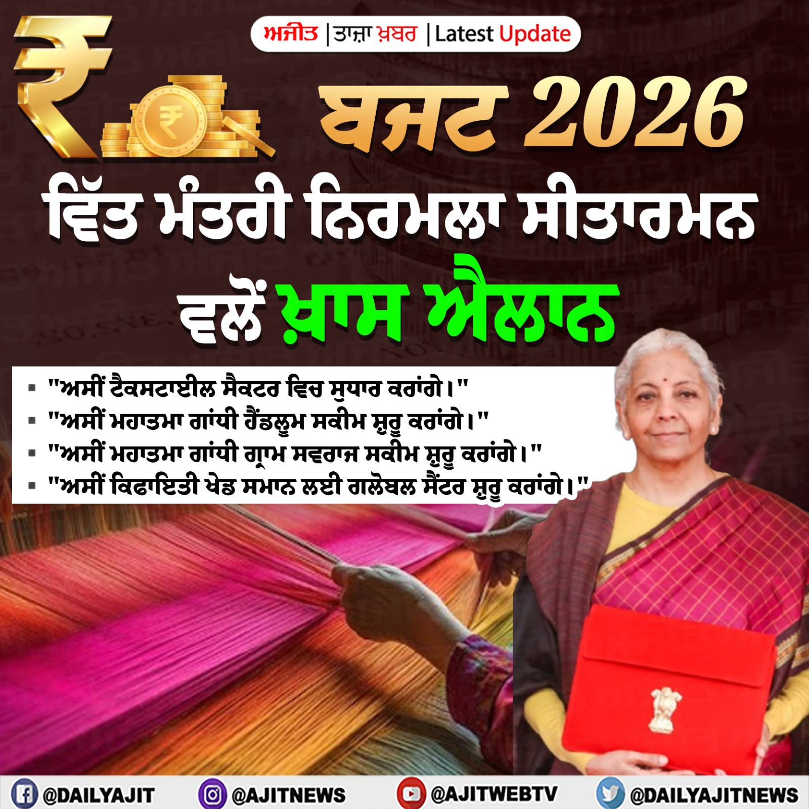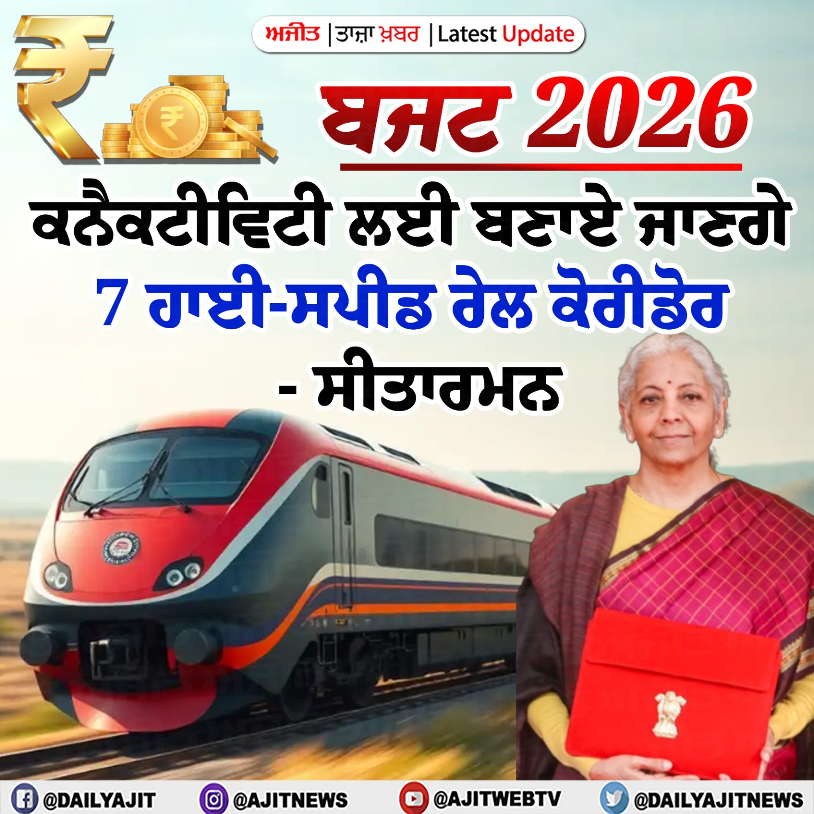 ਤਾਜ਼ਾ ਖ਼ਬਰਾਂ ਬਜਟ 2026 : ਕੇਂਦਰੀ ਵਿੱਤ ਮੰਤਰੀ ਨਿਰਮਲਾ ਸੀਤਾਰਮਨ ਅਤੇ ਵਿੱਤ ਰਾਜ ਮੰਤਰੀ ਪੰਕਜ ਚੌਧਰੀ ਪਹੁੰਚੇ ਸੰਸਦ 1 hours 40 minutes ago