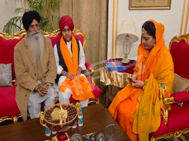 ਨਾਭਾ, (ਪਟਿਆਲਾ), 2 ਫਰਵਰੀ (ਜਗਨਾਰ ਸਿੰਘ ਦੁਲੱਦੀ)- ਸ਼੍ਰੋਮਣੀ ਗੁਰਦੁਆਰਾ ਪ੍ਰਬੰਧਕ ਕਮੇਟੀ ਦੇ ਪ੍ਰਧਾਨ ਹਰਜਿੰਦਰ ਸਿੰਘ ਧਾਮੀ ਅੱਜ ਰਿਆਸਤੀ ਸ਼ਹਿਰ ਨਾਭਾ ਦੇ ਸ਼ਾਹੀ ਹੀਰਾ ਮਹਿਲ ਵਿਖੇ ਪਹੁੰਚੇ, ਜਿਥੇ ਉਹਨਾਂ ਵਲੋਂ ਧੰਨ ਧੰਨ ਸ੍ਰੀ ਗੁਰੂ ਗ੍ਰੰਥ ਸਾਹਿਬ ਜੀ ਦਾ ਓਟ ਆਸਰਾ ਲਿਹਾ ਗਿਆ। ਉਪਰੰਤ ਐਡਵੋਕੇਟ ਧਾਮੀ ਵਲੋਂ ਸ਼ਾਹੀ ਪਰਿਵਾਰ ਨਾਲ ਮੁਲਾਕਾਤ ਕਰਕੇ ਯੁਵਰਾਜ ਅਭੀ ਉਦੇ ਪ੍ਰਤਾਪ ਸਿੰਘ ਦੀ ਦਸਤਾਰਬੰਦੀ ਦੀਆਂ ਵਧਾਈਆਂ ਦਿੱਤੀਆਂ ਗਈਆਂ।