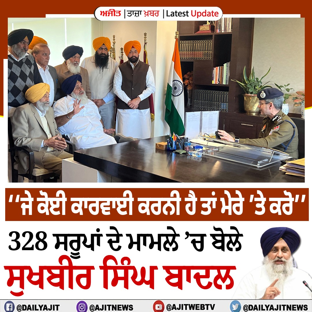 ਚੰਡੀਗੜ੍ਹ, 5 ਫਰਵਰੀ (ਦਵਿੰਦਰ) - 328 ਸਰੂਪਾਂ ਦੇ ਮਾਮਲੇ ਦੇ ਵਿਚ ਸ਼੍ਰੋਮਣੀ ਅਕਾਲੀ ਦਲ ਦੇ ਪ੍ਰਧਾਨ ਅਤੇ ਪੂਰੀ ਕੋਰ ਕਮੇਟੀ ਅੱਜ ਡੀ.ਜੀ.ਪੀ. ਦਫਤਰ ਵਿਖੇ ਪਹੁੰਚੀ ਹੈ। ਇਸ ਮੌਕੇ ਸੁਖਬੀਰ ਸਿੰਘ ਬਾਦਲ ਨੇ ਕਿਹਾ ਕਿ ਆਪ ਸਰਕਾਰ ਵਲੋਂ 328 ਸਰੂਪਾਂ ਦੇ ਮਾਮਲੇ ਵਿਚ ਐਸਆਈਟੀ ਬਣਾ ਕੇ ਮੇਰੇ ਨਿੱਜੀ ਕਾਰੋਬਾਰ ਦੀ ਜਾਂਚ ਕਰਕੇ ਝੂਠਾ ਪਰਚਾ ਦਰਜ ਕਰਨ ਦੀ ਕੋਸ਼ਿਸ਼ ਕੀਤੀ ਜਾ ਰਹੀ ਹੈ। ਸੁਖਬੀਰ ਸਿੰਘ ਬਾਦਲ ਨੇ ਇਹ ਵੀ ਕਿਹਾ ਕਿ ਪੁਲਿਸ ਟੀਮ ਮੇਰੇ ਅਕਾਊਂਟੈਂਟਾਂ ਅਤੇ ਉਨ੍ਹਾਂ ਦੇ ਪਰਿਵਾਰਾਂ ਨੂੰ ਤੰਗ ਪ੍ਰੇਸ਼ਾਨ ਕਰ ਰਹੀ ਹੈ, ਜਦਿਕਿ ਉਨ੍ਹਾਂ ਦਾ ਸ਼੍ਰੋਮਣੀ ਕਮੇਟੀ ਦੇ ਨਾਲ ਕੋਈ ਸਬੰਧ ਵੀ ਨਹੀਂ। ਉਨ੍ਹਾਂ ਕਿਹਾ ਕਿ ਉਹ ਖੁੱਦ ਗ੍ਰਿਫਤਾਰੀ ਦੇਣ ਲਈ ਆਏ ਹਨ, ਉਨਾਂ ਉਤੇ ਪਰਚਾ ਦਰਜ ਕਰੋ ਅਤੇ ਜਾਂਚ ਕਰੋ।