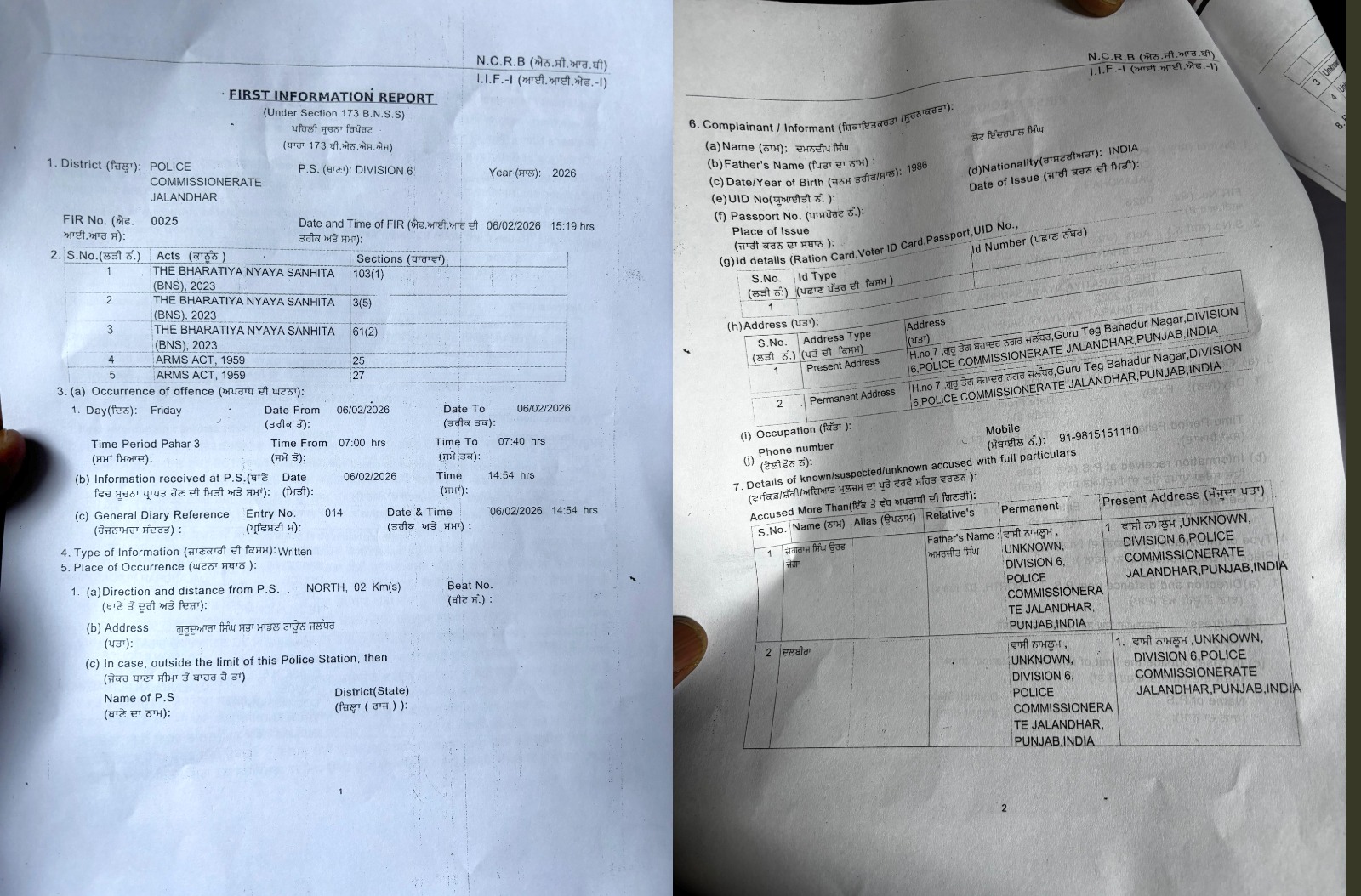 ਜਲੰਧਰ, 7 ਫਰਵਰੀ - ਕੱਲ੍ਹ ਜਲੰਧਰ ਦੇ ਮਾਡਲ ਟਾਊਨ ਦੇ ਪਾਸ਼ ਇਲਾਕੇ ਵਿਚ ਸ੍ਰੀ ਗੁਰੂਦੁਆਰਾ ਸਾਹਿਬ ਦੇ ਬਾਹਰ ਸਤਵਿੰਦਰ ਪਾਲ ਸਿੰਘ ਓਬਰਾਏ ਉਰਫ਼ ਲੱਕੀ ਓਬਰਾਏ ਦੇ ਕਤਲ ਦੇ ਮਾਮਲੇ ਵਿਚ ਐਫ.ਆਈ.ਆਰ. ਦੀ ਕਾਪੀ ਸਾਹਮਣੇ ਆਈ ਹੈ। ਐਫ.ਆਈ.ਆਰ. ਥਾਣਾ 6, ਮਾਡਲ ਟਾਊਨ, ਜਲੰਧਰ ਵਿਚ ਦਰਜ ਕੀਤੀ ਗਈ ਸੀ। ਪੁਲਿਸ ਨੇ ਆਈ.ਪੀ.ਸੀ. ਦੀ ਧਾਰਾ 103 (1), 3 (5), 61 (2) ਅਤੇ ਅਸਲਾ ਐਕਟ ਦੀ 25 ਅਤੇ 27 ਤਹਿਤ ਮਾਮਲਾ ਦਰਜ ਕੀਤਾ ਹੈ। ਪੁਲਿਸ ਨੇ ਮੁਲਜ਼ਮ ਜੋਗਰਾਜ ਸਿੰਘ ਉਰਫ਼ ਜੋਗਾ ਪੁੱਤਰ ਅਮਰਜੀਤ ਸਿੰਘ ਅਤੇ ਦਲਬੀਰਾ ਸਮੇਤ ਦੋ ਅਣ-ਪਛਾਤੇ ਵਿਅਕਤੀਆਂ ਖ਼ਿਲਾਫ਼ ਕੇਸ ਦਰਜ ਕੀਤਾ ਹੈ।