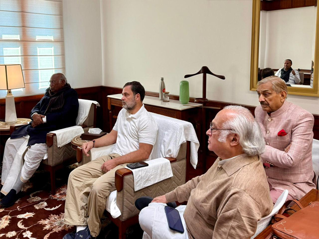 ਨਵੀਂ ਦਿੱਲੀ, 10 ਫਰਵਰੀ- ਅੱਜ ਸੰਸਦ ਭਵਨ ਕੰਪਲੈਕਸ ਵਿਚ ਵਿਰੋਧੀ ਧਿਰ ਦੇ ਨੇਤਾ, ਰਾਜ ਸਭਾ ਅਤੇ ਕਾਂਗਰਸ ਪ੍ਰਧਾਨ ਮੱਲਿਕ ਅਰਜੁਨ ਖੜਗੇ ਦੇ ਦਫ਼ਤਰ ਵਿਚ ਭਾਰਤ ਦੇ ਬਲਾਕ ਫਲੋਰ ਆਗੂਆਂ ਦੀ ਮੀਟਿੰਗ ਹੋਈ। ਇਸ ਮੀਟਿੰਗ ਵਿਚ ਲੋਕ ਸਭਾ ਵਿਚ ਵਿਰੋਧੀ ਧਿਰ ਦੇ ਨੇਤਾ ਰਾਹੁਲ ਗਾਂਧੀ ਵੀ ਮੌਜੂਦ ਸਨ।