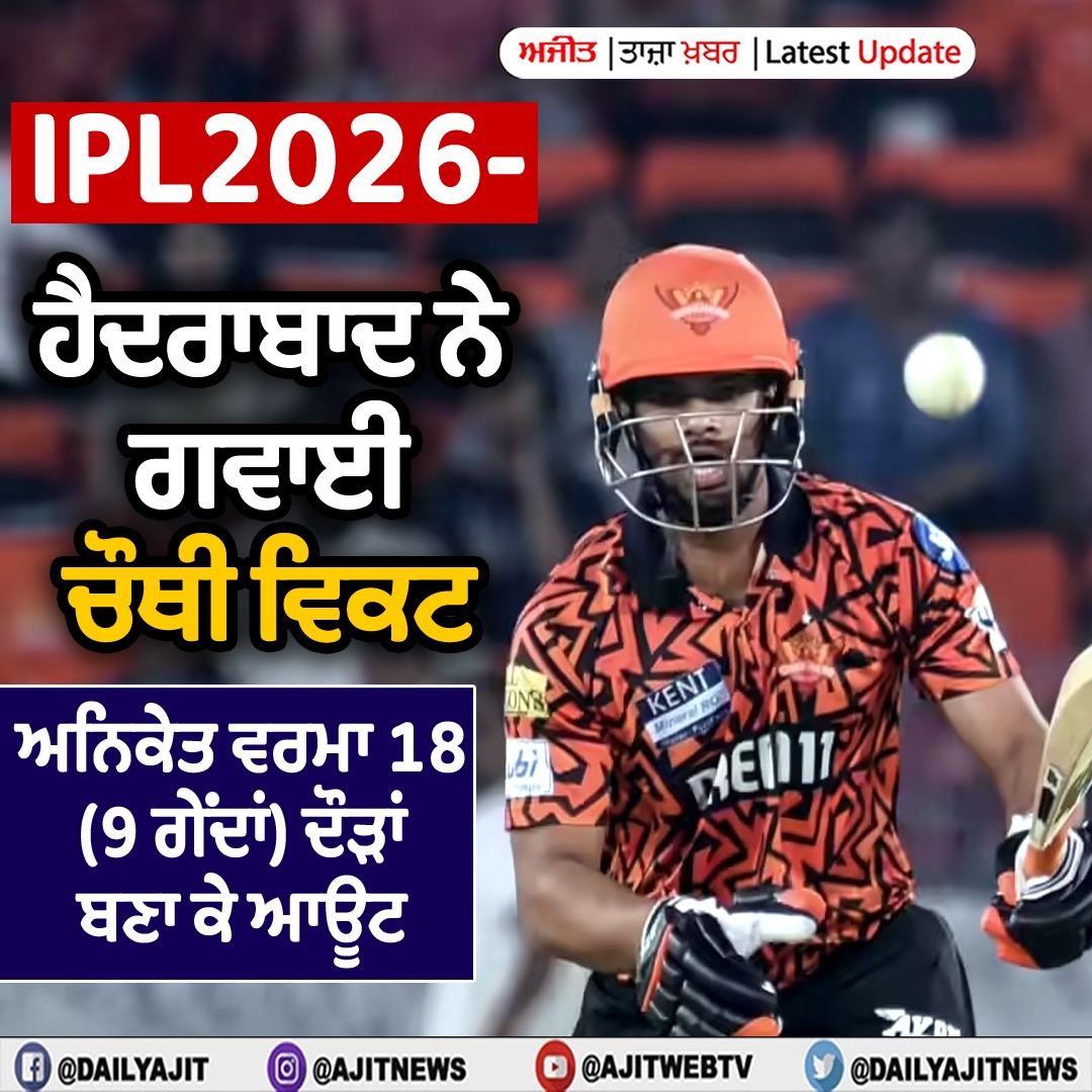 ਆਈ.ਪੀ.ਐਲ.2026 - ਹੈਦਰਾਬਾਦ ਖ਼ਿਲਾਫ਼ ਟਾਸ ਜਿੱਤ ਕੇ ਪੰਜਾਬ ਨੇ ਕੀਤਾ ਪਹਿਲਾਂ ਗੇਂਦਬਾਜ਼ੀ ਦਾ ਫ਼ੈਸਲਾ